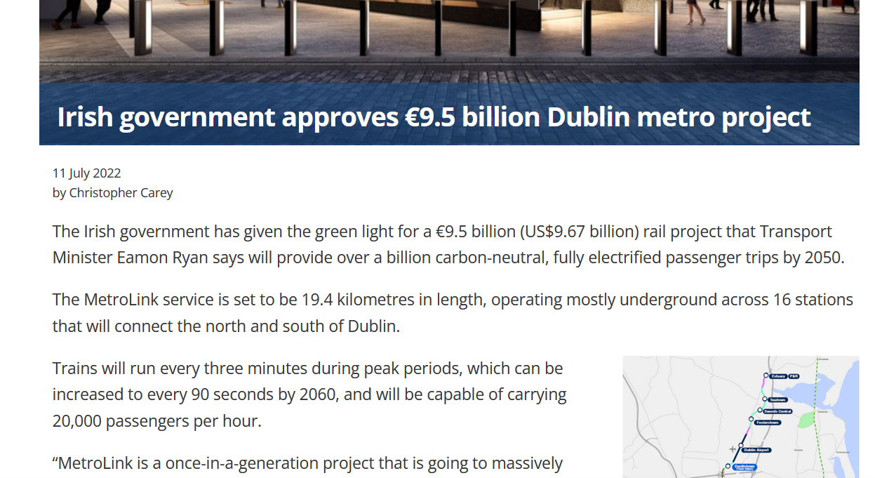 The Dublin Metro plan involves a line running